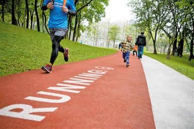 天河公園拆圍透綠打造出一條1430米的緩跑徑。羊城晚報(bào)記者 梁喻 攝