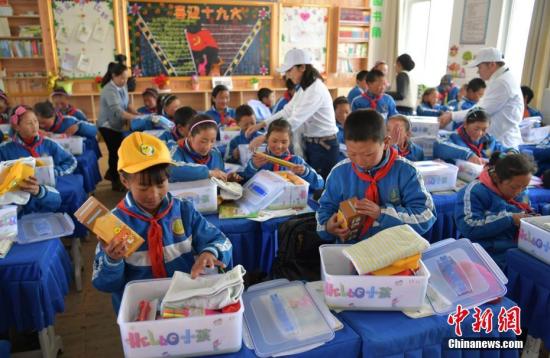 資料圖:藏區(qū)孩子們正在查看自己收到的愛心包。 劉忠俊 攝