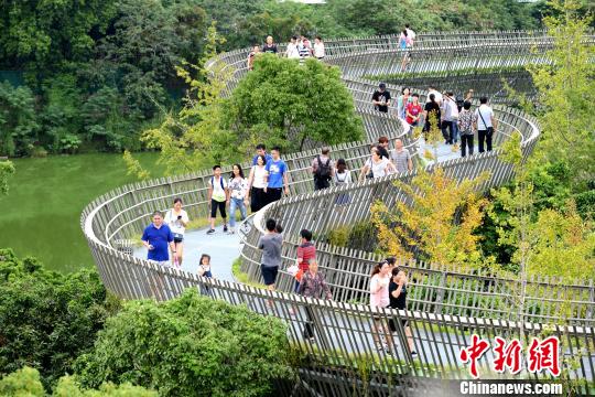 “福道”的設計借鑒了新加坡的亞歷山大森林步道,采取的也是鋼架鏤空設計?!⊥鯑|明 攝