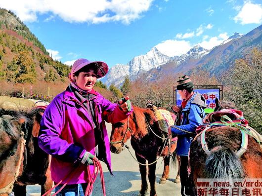 有“東方阿爾卑斯山”之稱的四姑娘山,位于四川阿壩藏族羌族自治州小金縣境內(nèi),與“大熊貓的故鄉(xiāng)”——臥龍自然保護(hù)區(qū)接壤。由于生態(tài)環(huán)境保護(hù)的特殊性,不少觀光地點(diǎn)車輛無法進(jìn)入,只能徒步穿越或者騎馬進(jìn)山,馬匹具有十分重要地位?!耙婚_始,我一個(gè)人牽馬,沒有統(tǒng)一的組織和管理,一天有時(shí)候只能掙三四十元,有的游客還擔(dān)心是否安全,不敢坐?!痹鞲嬖V記者,村里統(tǒng)一管理以后,村民接受了專業(yè)培訓(xùn)、收費(fèi)透明,選擇坐馬穿越長(zhǎng)坪溝和海子溝的游客越來越多。如今,長(zhǎng)坪村有牽馬師700余人,牽馬成為村民重要的收入來源。