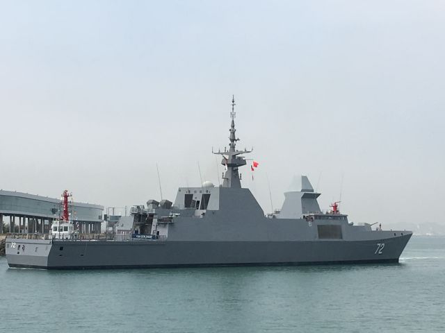 據了解,新加坡海軍“堅強”號護衛(wèi)艦(舷號72),排水量3200噸,長114.8米,寬16.3米,桅高35米,航速27節(jié)。