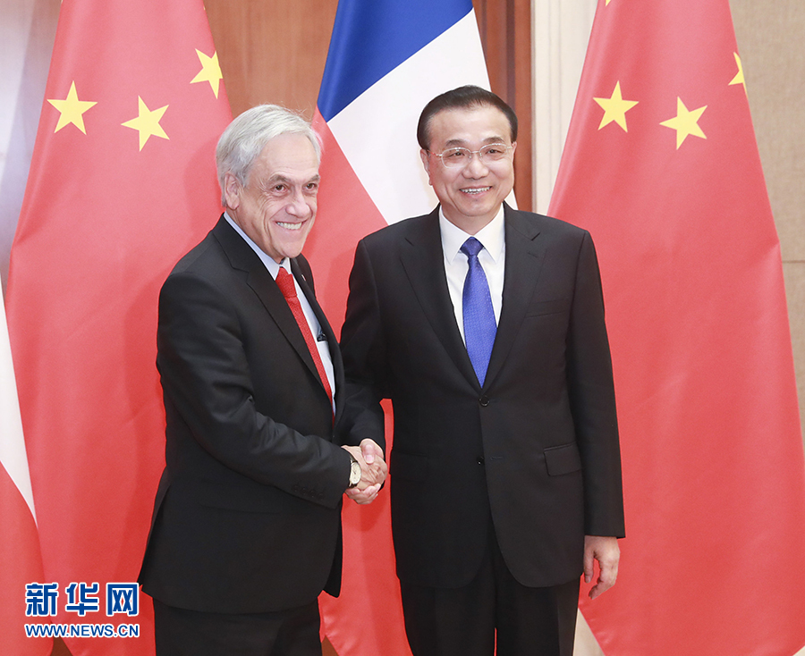 李克強(qiáng)表示,智利是第一個同新中國建交的南美國家,明年將迎來兩國建交50周年。習(xí)近平主席同總統(tǒng)先生舉行了富有成果的會談,為中智全面戰(zhàn)略伙伴關(guān)系深入發(fā)展注入新動力。去年,在全球貿(mào)易增長乏力背景下,中智貿(mào)易逆勢增長,顯示出兩國合作的巨大潛力。希望雙方面向未來,以深入共建“一帶一路”為契機(jī),加強(qiáng)發(fā)展戰(zhàn)略對接,建設(shè)好升級版中智自貿(mào)區(qū),拓展在交通基礎(chǔ)設(shè)施、電力、農(nóng)業(yè)、礦業(yè)、創(chuàng)新等領(lǐng)域的務(wù)實(shí)合作。中方愿進(jìn)口更多智利優(yōu)質(zhì)產(chǎn)品,發(fā)揮電子商務(wù)等數(shù)字經(jīng)濟(jì)平臺作用,并利用中智自貿(mào)區(qū)擴(kuò)大同拉美其他國家的經(jīng)貿(mào)合作,不斷推動中拉整體關(guān)系與合作向前發(fā)展。