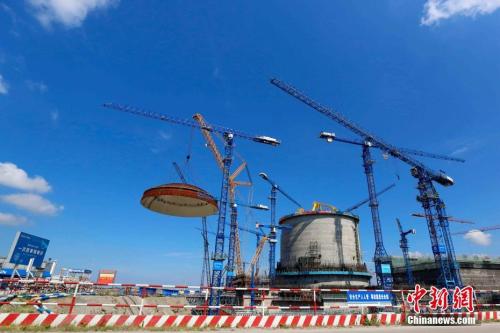 資料圖:圖為中國自主三代核電技術(shù)“華龍一號”吊裝穹頂。中新社發(fā) 黃穗芳 攝