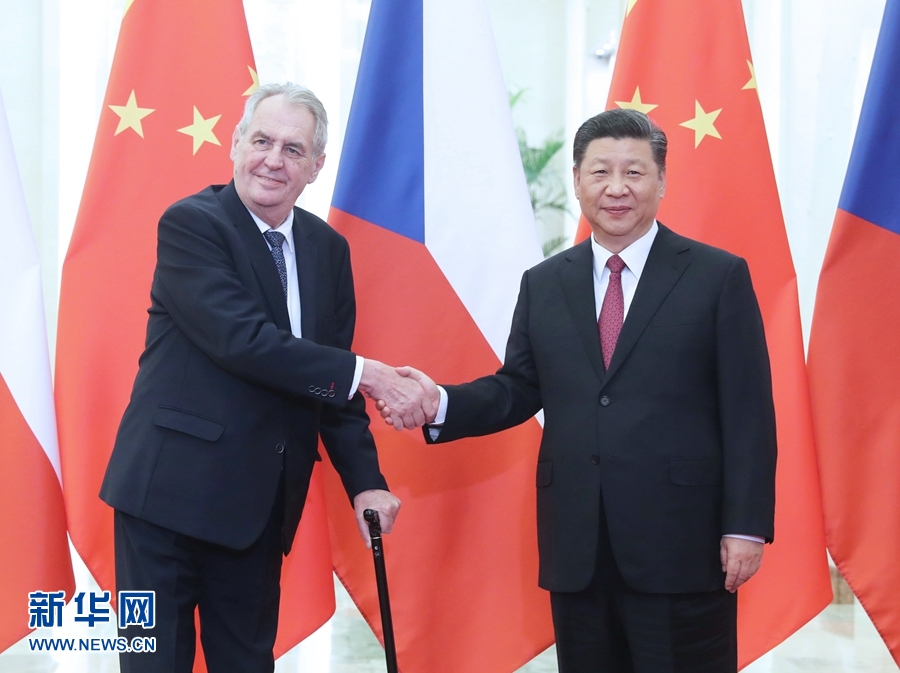 4月28日,國家主席習(xí)近平在北京人民大會堂會見捷克總統(tǒng)澤曼。 新華社記者 翟健嵐 攝