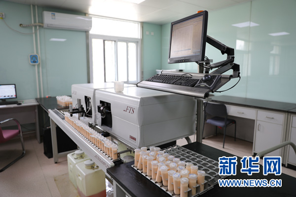 在辦公室簡(jiǎn)單的交談后,叢慧敏帶記者來(lái)到旁邊的一棟辦公樓,門(mén)口的工作人員正在從手推車(chē)上卸下裝滿了橙色乳狀液體的試管,這也就是叢慧敏的另一項(xiàng)工作——對(duì)奶牛產(chǎn)下的牛奶進(jìn)行化驗(yàn)分析。除了找到好牛,還得讓牛吃上好料,“跟人一樣,我們也會(huì)根據(jù)牛的身體狀況合理搭配飲食,目標(biāo)就是保證奶質(zhì)好?!泵總€(gè)月首農(nóng)北京奶牛中心都要檢測(cè)約8萬(wàn)份奶樣,對(duì)這些來(lái)自全國(guó)各地的奶質(zhì)進(jìn)行分析,通過(guò)數(shù)據(jù)對(duì)比得出結(jié)果,再將結(jié)果反饋給牧場(chǎng),指導(dǎo)牧場(chǎng)飼養(yǎng)過(guò)程中需要改進(jìn)的問(wèn)題。“舉個(gè)例子,某牧場(chǎng)樣本中,我們檢測(cè)發(fā)現(xiàn)乳脂低了,那么牛的食物里可能是吃的草少了,就需要我們減少某類飼料的分量,增加草的比重。”