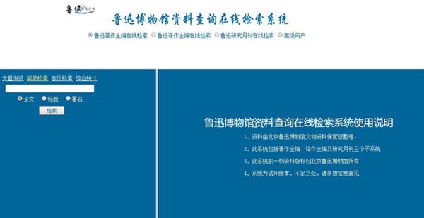 澎湃新聞記者查詢發(fā)現(xiàn),網友提到的“魯迅說過的話”檢索系統(tǒng)其實正確名稱為“魯迅博物館資料查詢在線檢測系統(tǒng)”(網址:http://cx.luxunmuseum.com.cn/)。根據(jù)官方介紹,該系統(tǒng)由北京魯迅博物館文物資料保管部整理,包括魯迅著作全編、譯作全編及研究月刊三個子系統(tǒng),而系統(tǒng)一切資料版權歸北京魯迅博物館所有。