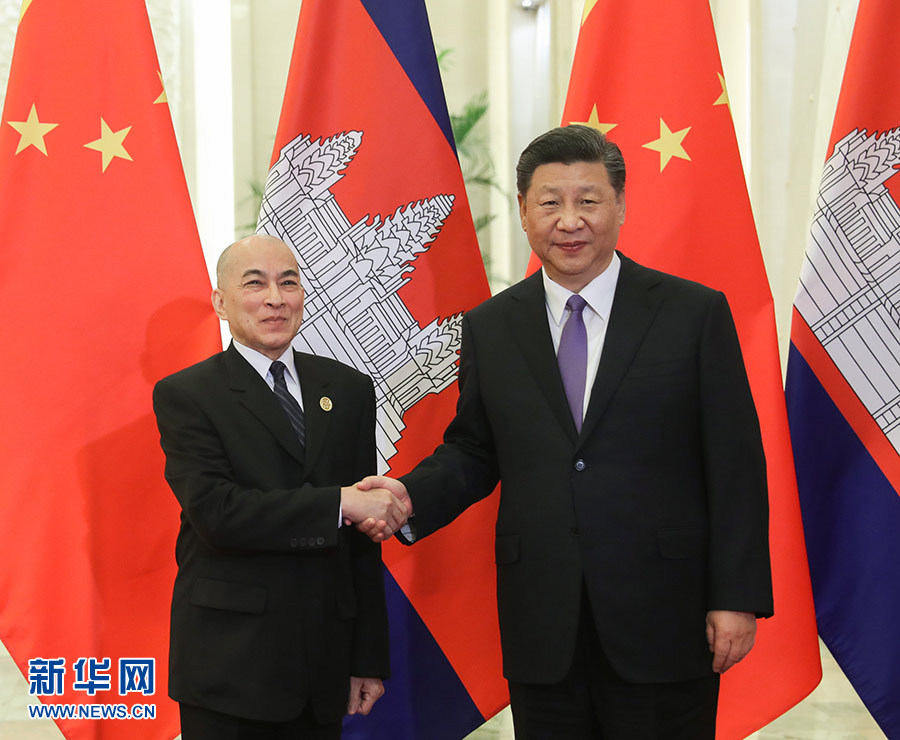 5月14日,國家主席習(xí)近平在北京人民大會堂會見來華出席亞洲文明對話大會的柬埔寨國王西哈莫尼。 新華社記者 姚大偉 攝