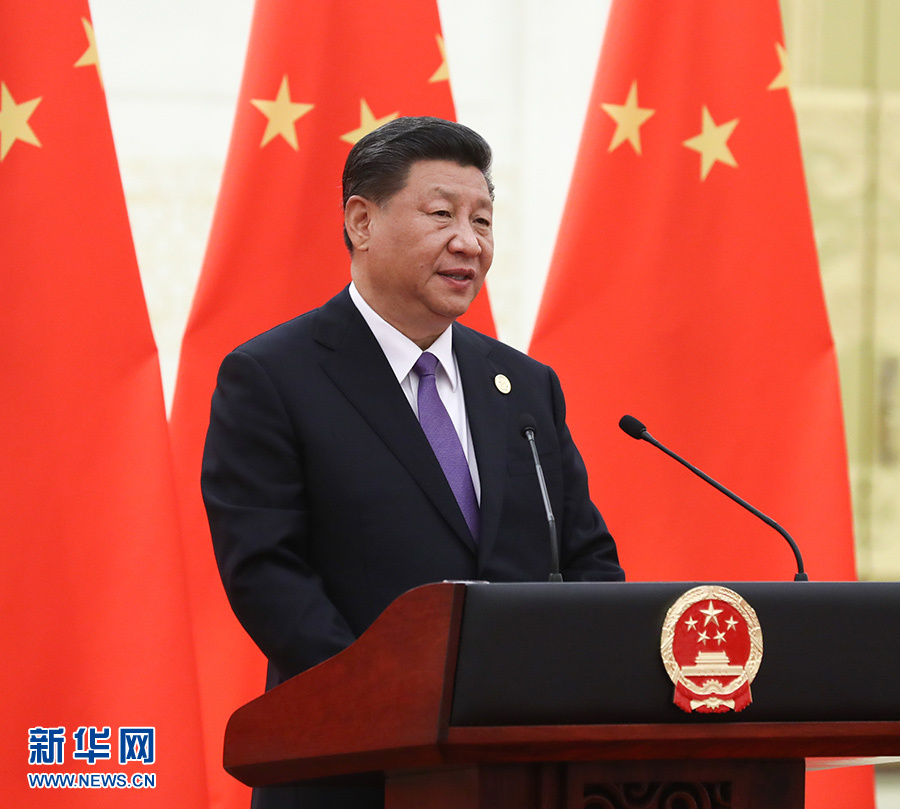 5月14日,國家主席習(xí)近平和夫人彭麗媛在北京人民大會堂舉行宴會,歡迎出席亞洲文明對話大會的外方領(lǐng)導(dǎo)人夫婦及嘉賓。這是習(xí)近平在宴會上發(fā)表致辭。 新華社記者 鞠鵬 攝