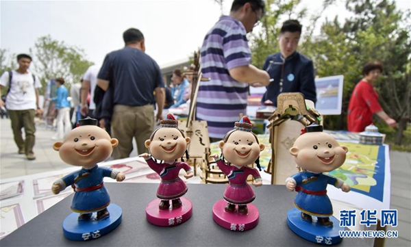 在北京世園會(huì)“內(nèi)蒙古日”文化展示活動(dòng)上展出的呼倫貝爾少數(shù)民族文創(chuàng)產(chǎn)品(5月17日攝)。新華社記者 李欣 攝