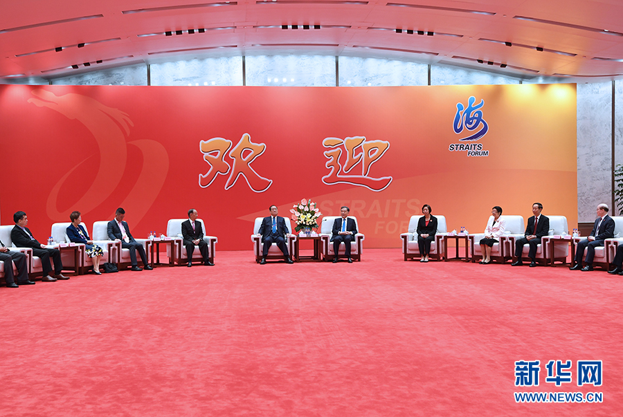 6月16日,中共中央政治局常委、全國(guó)政協(xié)主席汪洋在廈門出席第十一屆海峽論壇并致辭。這是論壇開(kāi)幕前,汪洋會(huì)見(jiàn)出席論壇的部分兩岸嘉賓和主辦單位代表。 新華社記者 饒愛(ài)民 攝