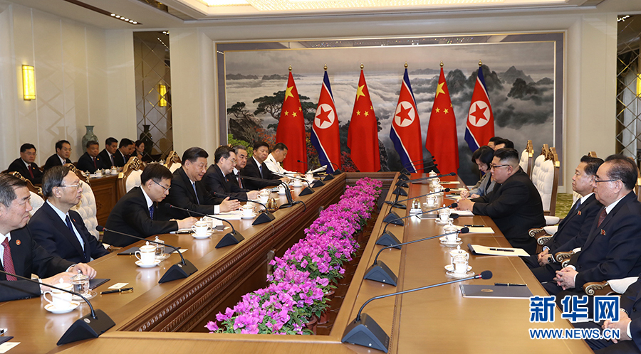 6月20日,中共中央總書記、國(guó)家主席習(xí)近平在平壤錦繡山迎賓館同朝鮮勞動(dòng)黨委員長(zhǎng)、國(guó)務(wù)委員會(huì)委員長(zhǎng)金正恩會(huì)談。 新華社記者 黃敬文 攝