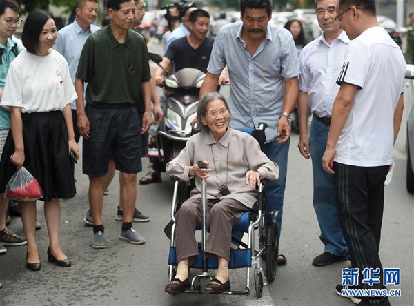 6月30日,呂銀芬(中)在家人陪同下回到七一村。新華社記者 韓傳號(hào) 攝