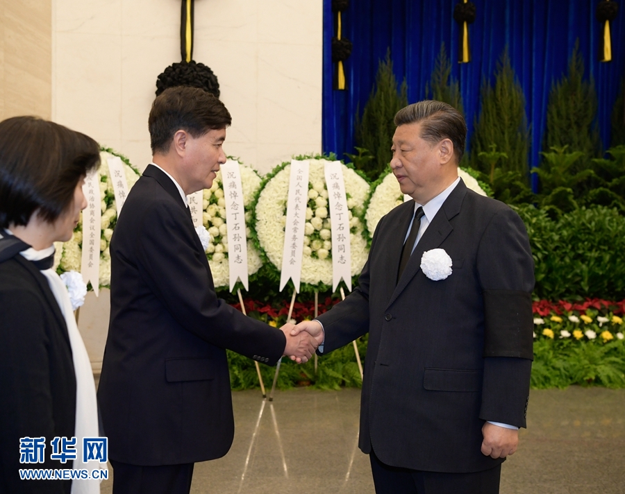 上午9時45分許,習近平、李克強、栗戰(zhàn)書、汪洋、王滬寧、趙樂際、韓正、王岐山等,在哀樂聲中緩步來到丁石孫同志的遺體前肅立默哀,向丁石孫同志的遺體三鞠躬,并與丁石孫同志親屬一一握手,表示慰問。
