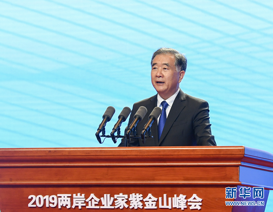11月4日,2019兩岸企業(yè)家紫金山峰會在江蘇南京舉行。中共中央政治局常委、全國政協(xié)主席汪洋出席并發(fā)表演講。 新華社記者 高潔 攝