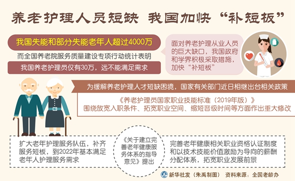 新華社北京11月5日電(記者田曉航)來自全國老齡辦的數(shù)據顯示,我國失能和部分失能老年人超過4000萬,而全國養(yǎng)老院服務質量建設專項行動統(tǒng)計表明,我國養(yǎng)老護理員僅有30萬,遠不能滿足需求。面對養(yǎng)老護理從業(yè)人員的巨大缺口,我國政府和學界積極采取措施,加快“補短板”。