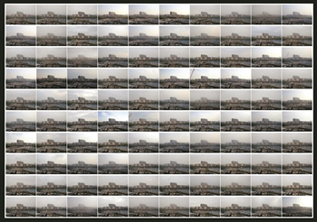 拍攝進行到3個月多后,周健仕把照片整理成專題,命名為《杭州空氣百日祭》。在那幅作品當中,參照物和背景基本相同,唯一變化的是清晰度:除了少數(shù)幾張有藍天白云,幾乎所有的照片都是灰色的。