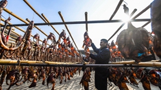 貧困戶段書梅就在韓海超創(chuàng)辦的工廠里打工。段書梅一家6口人,丈夫身患疾病,以前靠種地一年收入只有1萬多元。在幫扶下,段書梅一家現(xiàn)在的年收入已近7萬元,順利脫貧?!坝辛恕⒐S’,村里六、七十歲的人都能掙到工資,哪里還會怕回到以前受窮的日子。”段書梅說。