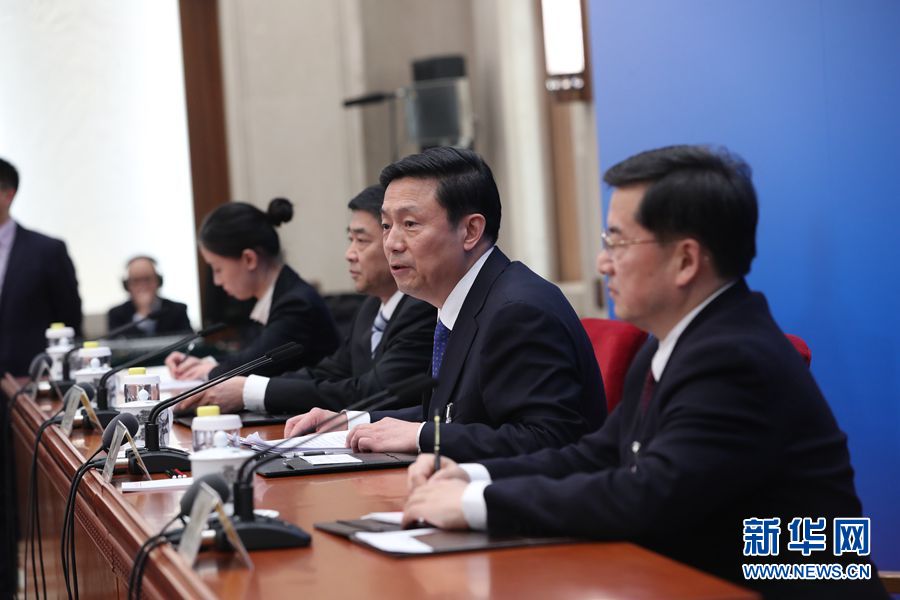 全國(guó)政協(xié)十三屆二次會(huì)議新聞發(fā)布會(huì)于3月2日15:00在人民大會(huì)堂一層新聞發(fā)布廳召開(kāi),大會(huì)新聞發(fā)言人郭衛(wèi)民向中外媒體介紹本次大會(huì)有關(guān)情況并回答記者提問(wèn)。圖為新聞發(fā)言人郭衛(wèi)民(右二)介紹本次大會(huì)有關(guān)情況。新華網(wǎng)/中國(guó)政府網(wǎng) 翟子赫 攝