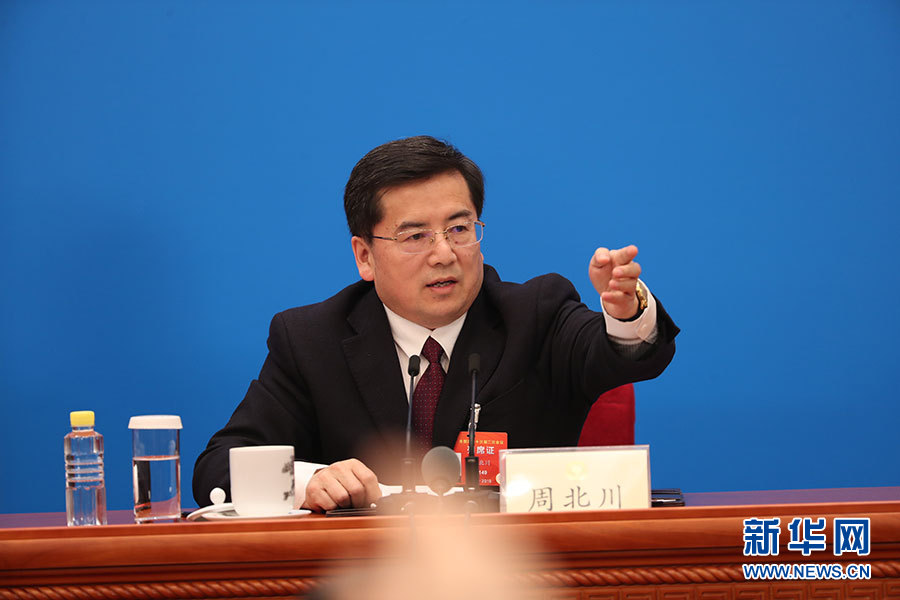 全國(guó)政協(xié)十三屆二次會(huì)議新聞發(fā)布會(huì)于3月2日15:00在人民大會(huì)堂一層新聞發(fā)布廳召開(kāi),大會(huì)新聞發(fā)言人郭衛(wèi)民向中外媒體介紹本次大會(huì)有關(guān)情況并回答記者提問(wèn)。圖為新聞發(fā)布會(huì)主持人周北川。新華網(wǎng)/中國(guó)政府網(wǎng) 陳杰 攝