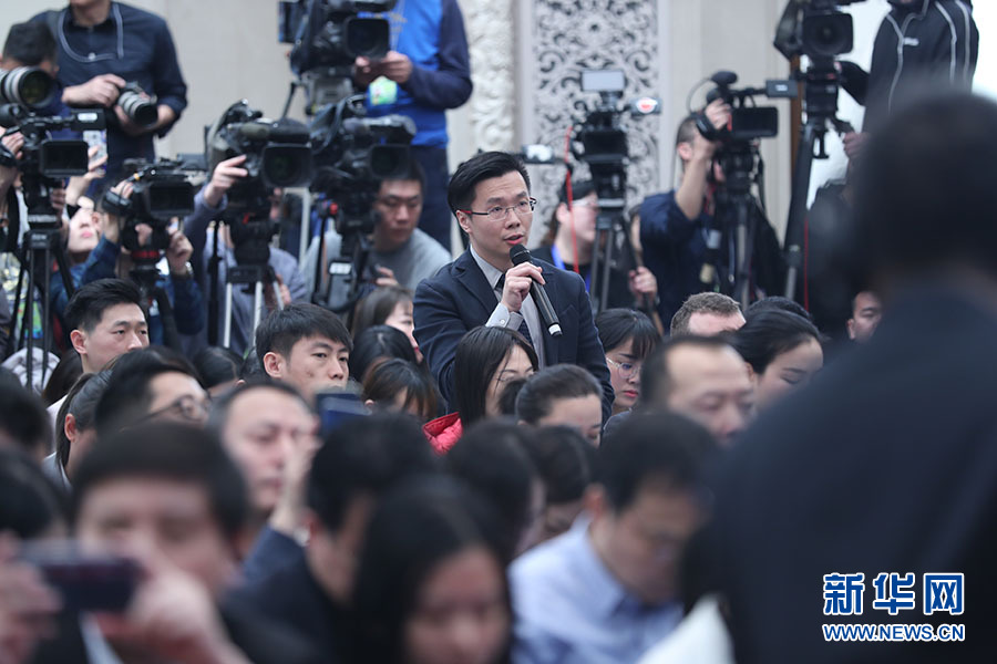 十三屆全國(guó)人大二次會(huì)議3月4日上午11時(shí)15分在人民大會(huì)堂新聞發(fā)布廳舉行新聞發(fā)布會(huì),由大會(huì)發(fā)言人就大會(huì)議程和人大工作相關(guān)的問(wèn)題回答中外記者提問(wèn)。圖為新華社記者提問(wèn)。新華網(wǎng)/中國(guó)政府網(wǎng) 陳杰 攝