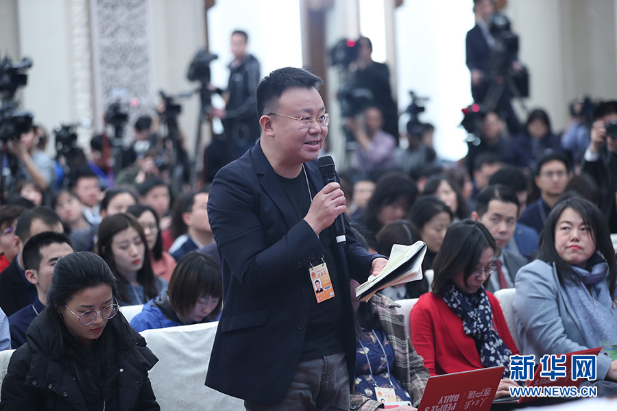 十三屆全國人大二次會(huì)議3月4日上午11時(shí)15分在人民大會(huì)堂新聞發(fā)布廳舉行新聞發(fā)布會(huì),由大會(huì)發(fā)言人就大會(huì)議程和人大工作相關(guān)的問題回答中外記者提問。圖為封面新聞?dòng)浾咛釂枴P氯A網(wǎng)/中國政府網(wǎng) 陳杰 攝
