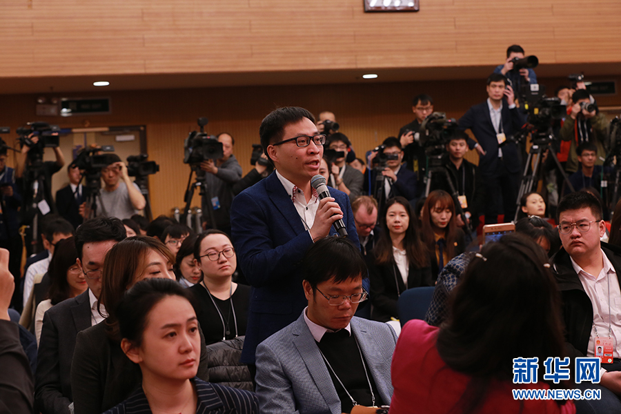 十三屆全國(guó)人大二次會(huì)議新聞中心于3月6日(星期三)上午10時(shí)在梅地亞中心新聞發(fā)布廳舉行記者會(huì),邀請(qǐng)國(guó)家發(fā)展改革委主任何立峰,副主任寧吉喆、連維良就“大力推動(dòng)經(jīng)濟(jì)高質(zhì)量發(fā)展”相關(guān)問(wèn)題回答中外記者的提問(wèn)。圖為經(jīng)濟(jì)日?qǐng)?bào)融媒體記者提問(wèn)。新華網(wǎng)/中國(guó)政府網(wǎng) 馬娟 攝