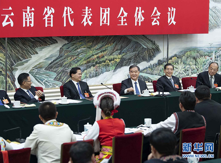 汪洋分別參加臺(tái)灣代表團(tuán)、云南代表團(tuán)審議。在臺(tái)灣代表團(tuán),汪洋在認(rèn)真聽(tīng)取符之冠、陳云英、陳軍等代表發(fā)言后指出,習(xí)近平總書(shū)記在《告臺(tái)灣同胞書(shū)》發(fā)表40周年紀(jì)念會(huì)上的重要講話(huà),是指引新時(shí)代對(duì)臺(tái)工作的綱領(lǐng)性文獻(xiàn)。要學(xué)深悟透講話(huà)的精神實(shí)質(zhì)和核心要義,深刻認(rèn)識(shí)兩岸統(tǒng)一是歷史大勢(shì),牢牢把握對(duì)臺(tái)工作正確方向。要廣泛深入聽(tīng)取臺(tái)灣同胞的意見(jiàn),完善配套政策,把促進(jìn)兩岸經(jīng)濟(jì)文化交流合作“31條措施”等惠臺(tái)舉措落到實(shí)處,深化兩岸融合發(fā)展。要堅(jiān)持一個(gè)中國(guó)原則和“九二共識(shí)”,堅(jiān)決反對(duì)“臺(tái)獨(dú)”,團(tuán)結(jié)更多臺(tái)灣同胞共擔(dān)民族大義,為推動(dòng)兩岸關(guān)系和平發(fā)展、推進(jìn)祖國(guó)和平統(tǒng)一進(jìn)程作出更大貢獻(xiàn)。在云南代表團(tuán),汪洋認(rèn)真聽(tīng)取阮成發(fā)、馬正山、玉龍等代表的發(fā)言,充分肯定過(guò)去一年云南改革發(fā)展取得的成績(jī)。他希望云南深入貫徹習(xí)近平總書(shū)記對(duì)云南工作的重要指示精神,堅(jiān)定不移落實(shí)黨的民族政策和宗教工作基本方針,大力幫助人口較少民族和“直過(guò)民族”發(fā)展,努力打造民族團(tuán)結(jié)進(jìn)步示范區(qū)。要堅(jiān)決打好脫貧攻堅(jiān)戰(zhàn),努力攻克深度貧困堡壘,著力提高脫貧質(zhì)量,確保全面小康路上一個(gè)都不掉隊(duì)。