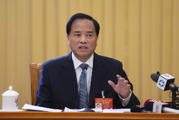 3月5日,海南代表團(tuán)在住地召開全體會議,審議政府工作報告。圖為劉賜貴代表審議時發(fā)言。新華網(wǎng)發(fā)(王凱 攝)