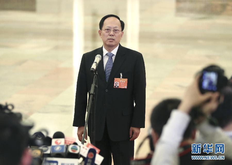 3月8日,十三屆全國(guó)人大二次會(huì)議在北京人民大會(huì)堂舉行第二次全體會(huì)議。這是國(guó)家體育總局局長(zhǎng)茍仲文在“部長(zhǎng)通道”接受采訪。新華社記者 金立旺 攝