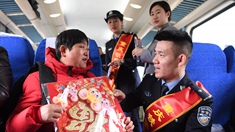 列車(chē)上,四川省總工會(huì)為老鄉(xiāng)們發(fā)放了溫暖大禮包,里面有零食、圍巾、對(duì)聯(lián)等,確保老鄉(xiāng)們?cè)诼w鄉(xiāng)途中有暖有食。旅途中,志愿者們進(jìn)行了文藝表演,并向農(nóng)民工發(fā)放創(chuàng)業(yè)就業(yè)、金融等宣傳資料。