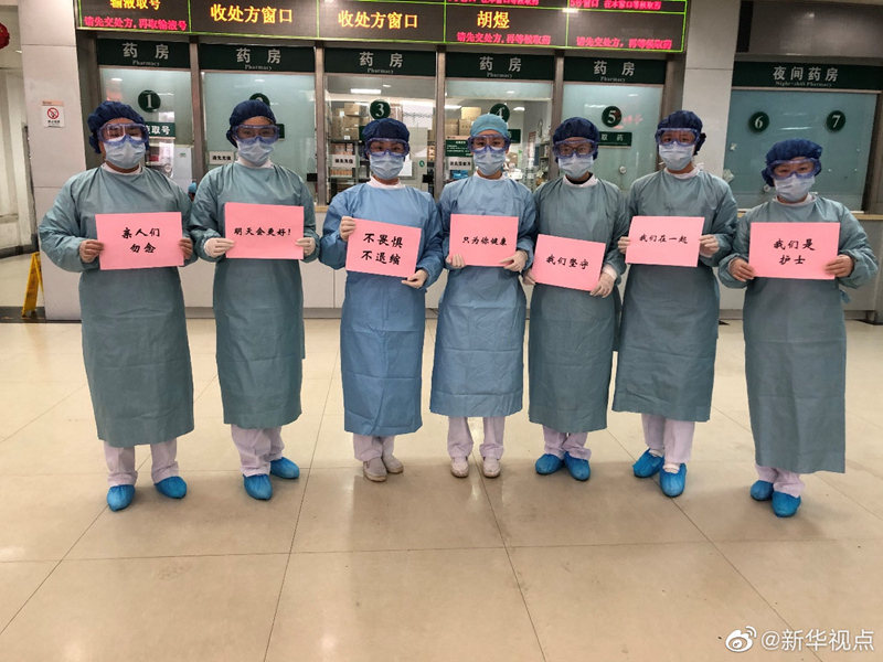 “不畏懼、不退縮”“我們堅守” “親人們,勿念?!背?,武漢同濟醫(yī)院兒科醫(yī)護人員在交班間隙拍了幾張?zhí)貏e的拜年照片發(fā)給家人和同事,為武漢市的醫(yī)務人員加油,也讓家人放心。除夕,本應是闔家團圓的時刻,但因為突如其來的疫情,許多醫(yī)務人員必須堅守在臨床第一線。為了讓父母放心,讓丈夫安心,也為了給全市堅守在最前線的醫(yī)護同行加油鼓勁,今天交班時,她們拍下了這樣一組照片。(記者李勁峰、胡喆)