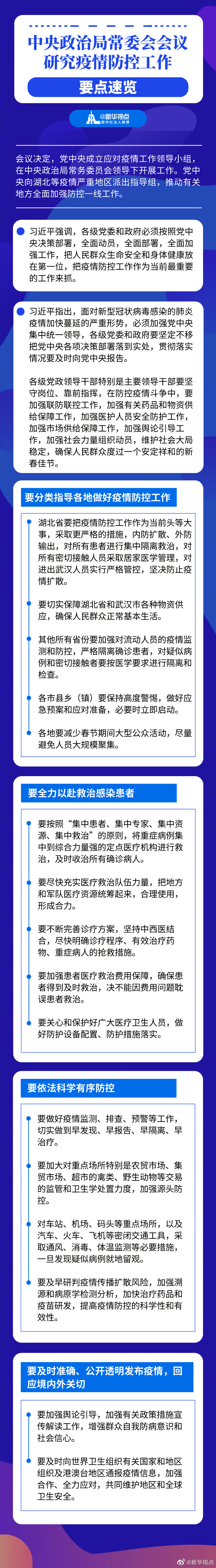 中共中央政治局常務(wù)委員會25日召開會議,專門聽取新型冠狀病毒感染的肺炎疫情防控工作匯報,對疫情防控特別是患者治療工作進(jìn)行再研究、再部署、再動員。習(xí)近平總書記主持會議并發(fā)表重要講話。