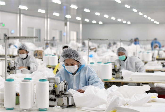 1月28日,在仙桃市湖北裕民防護(hù)用品有限公司生產(chǎn)車(chē)間內(nèi),工人在加緊生產(chǎn)醫(yī)用防護(hù)用品。 新華社記者 李賀 攝