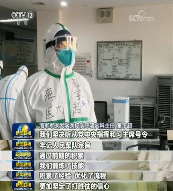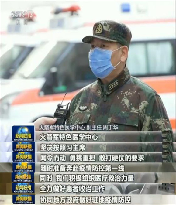 習(xí)主席向全軍發(fā)出的號令,給全軍官兵以極大鼓舞和有力動員。疫情發(fā)生后,人民軍隊堅決落實習(xí)主席重要指示,在黨中央和中央軍委統(tǒng)一指揮下,聞令而出、迅疾行動。我軍迅速啟動聯(lián)防聯(lián)控工作機制,緊急抽組精兵強將奔赴疫情防控第一線,各項救治工作有力有序有效展開。