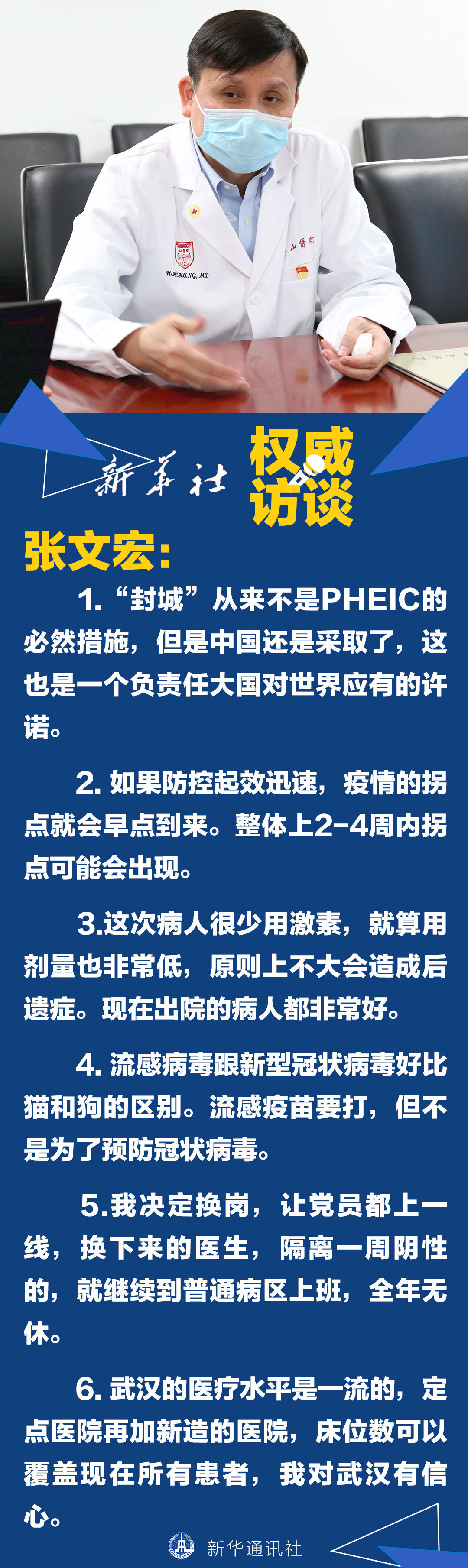 近日,上海醫(yī)療救治專家組組長、復(fù)旦大學(xué)附屬華山醫(yī)院感染科主任張文宏面對記者采訪說的這些話,使他成為網(wǎng)民心中的“硬核”醫(yī)生。1月31日,張文宏在接受新華社記者的專訪時(shí)表示,疫情來了,堅(jiān)守崗位是醫(yī)生的職責(zé)所在。