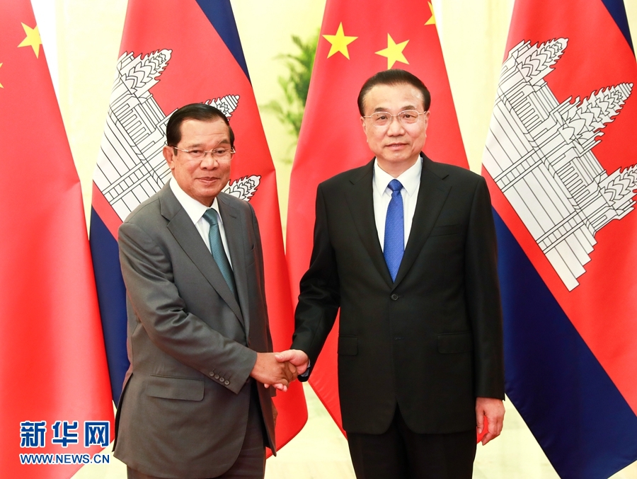 2月5日,國務(wù)院總理李克強(qiáng)在北京人民大會堂會見柬埔寨首相洪森。 新華社記者 龐興雷 攝