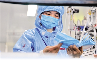 近日,河南省長垣市的醫(yī)用防護(hù)用品生產(chǎn)企業(yè)爭分奪秒全力趕制醫(yī)用產(chǎn)品。圖為工作人員在生產(chǎn)車間內(nèi)加工口罩。新華社發(fā)(郝源攝)
