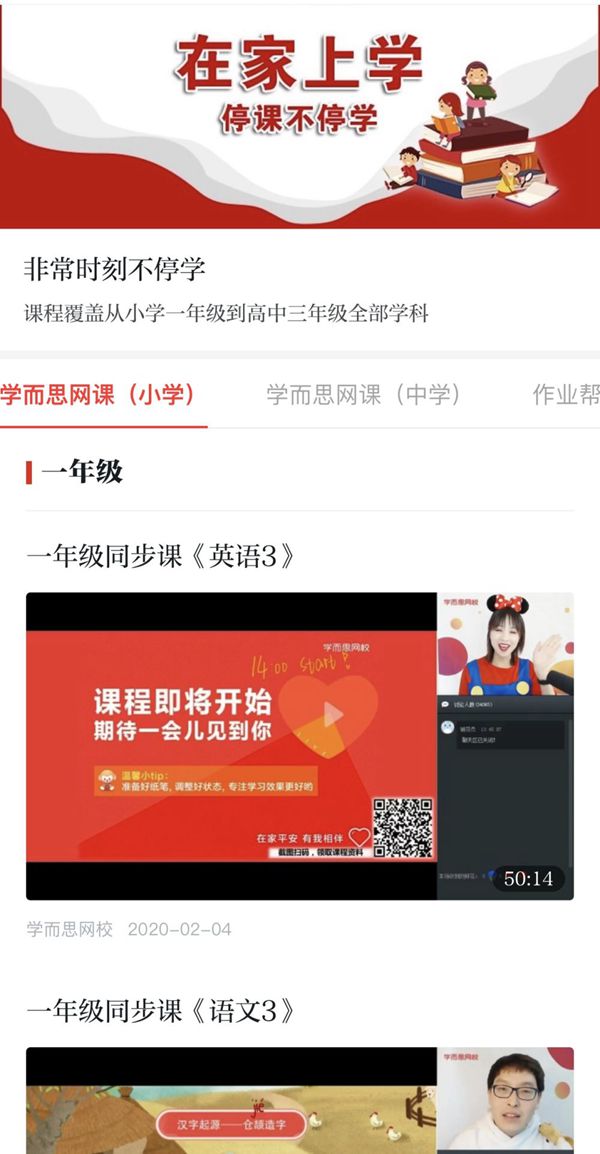 看點(diǎn)2.“在家上學(xué)”專區(qū):停課不停學(xué)!“學(xué)習(xí)強(qiáng)國(guó)”聯(lián)合“學(xué)而思”“新東方”“猿輔導(dǎo)”“作業(yè)幫”“掌門教育”等多家教育機(jī)構(gòu),組織上百位北大、清華、哈佛畢業(yè)名師,全國(guó)特級(jí)教師、家庭教育專家、心理學(xué)專家為延期開學(xué)的中小學(xué)生講課,提供從小學(xué)一年級(jí)到高中三年級(jí)全學(xué)科、全時(shí)段課程,直播、回看兩不誤,實(shí)現(xiàn)“停課不停教”“停課不停學(xué)”。此外,還有北京101中學(xué)、人大附中、清華附中、成都七中、中關(guān)村小學(xué)等中小學(xué)名校上千堂部級(jí)優(yōu)質(zhì)課程,讓全國(guó)各地的孩子們足不出戶就能享受最優(yōu)質(zhì)的教育資源。