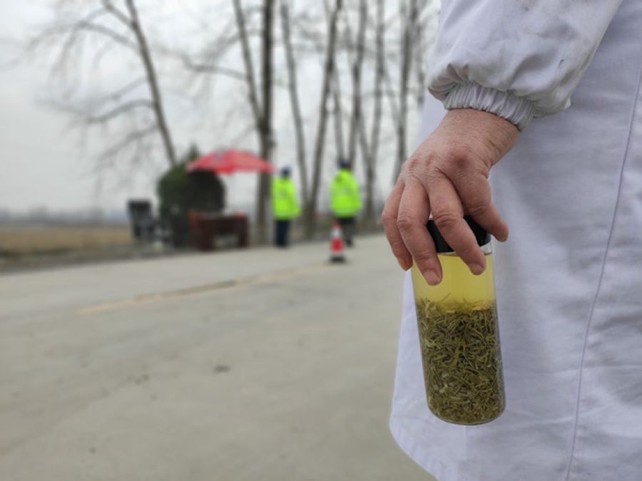 安徽金寨縣漆店村毗鄰湖北麻城,卡點(diǎn)就設(shè)置在省界碑旁。凌晨的大別山腹地,氣溫接近零下10度,紅外線測溫槍在室外無法正常工作。即便自己瑟瑟發(fā)抖,漆學(xué)濤還是把冰冷的測溫槍塞進(jìn)懷中。 “焐一會才能保證準(zhǔn)確?!闭灰瓜聛?,漆學(xué)濤的手已經(jīng)凍得麻木,甚至按不動測溫槍的按鍵。
