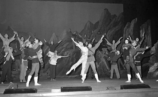 1973年2月10日,日本松山芭蕾舞團(tuán)的演員和中國舞劇團(tuán)的演員,在北京天橋劇場(chǎng)同臺(tái)演出《紅色娘子軍》。 新華社記者王景英攝