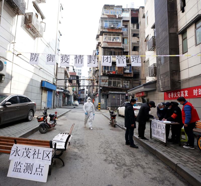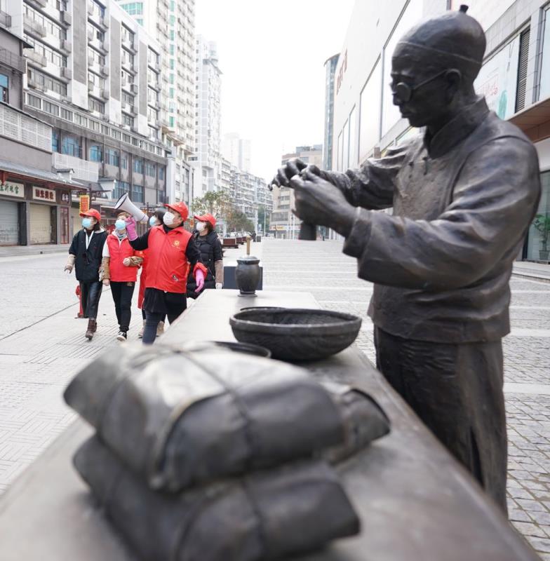 戰(zhàn)“疫”中的漢正街,看不到開(kāi)門(mén)的商戶(hù),很難想像高峰時(shí)漢正街的小商品綜合市場(chǎng)曾經(jīng)有60多個(gè)專(zhuān)業(yè)市場(chǎng)、30多萬(wàn)種商品。街頭行人不多,不時(shí)能看到街道、社區(qū)干部做宣傳或是為居民服務(wù)。胡亞非介紹說(shuō),漢正街轄區(qū)面積1.67平方公里,下轄19個(gè)社區(qū)。此次疫情開(kāi)始正值春節(jié)之前,10多萬(wàn)流動(dòng)人口返鄉(xiāng),目前常住居民1000余戶(hù),2.6萬(wàn)多人口。