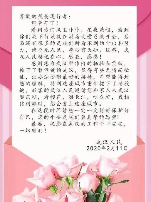 不久,華山醫(yī)院醫(yī)療隊(duì)回復(fù)道:這次,武漢人民需要幫助,我們責(zé)無(wú)旁貸地來(lái)了,來(lái)幫上一把!大家齊心協(xié)力,共渡難關(guān)。期待春暖花開,一起逛東湖、看櫻花、游長(zhǎng)江、吃龍蝦!