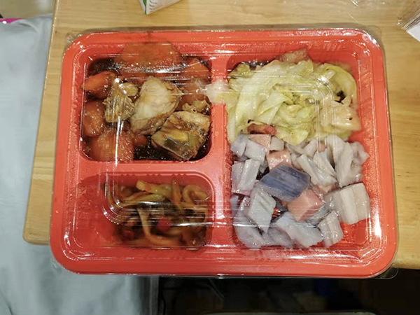 在漢江方艙治療的王漢民也已退燒多日,在女兒的遠(yuǎn)程協(xié)助下,他學(xué)會(huì)了用微信發(fā)圖片,每每拿到醫(yī)護(hù)人員分發(fā)的盒飯,他會(huì)第一時(shí)間拍下,發(fā)給女兒:“2月9日,今天早上有香蕉和牛奶,中午是蹄花,木耳炒肉和青菜,都是比較有營養(yǎng)的?!?/p>