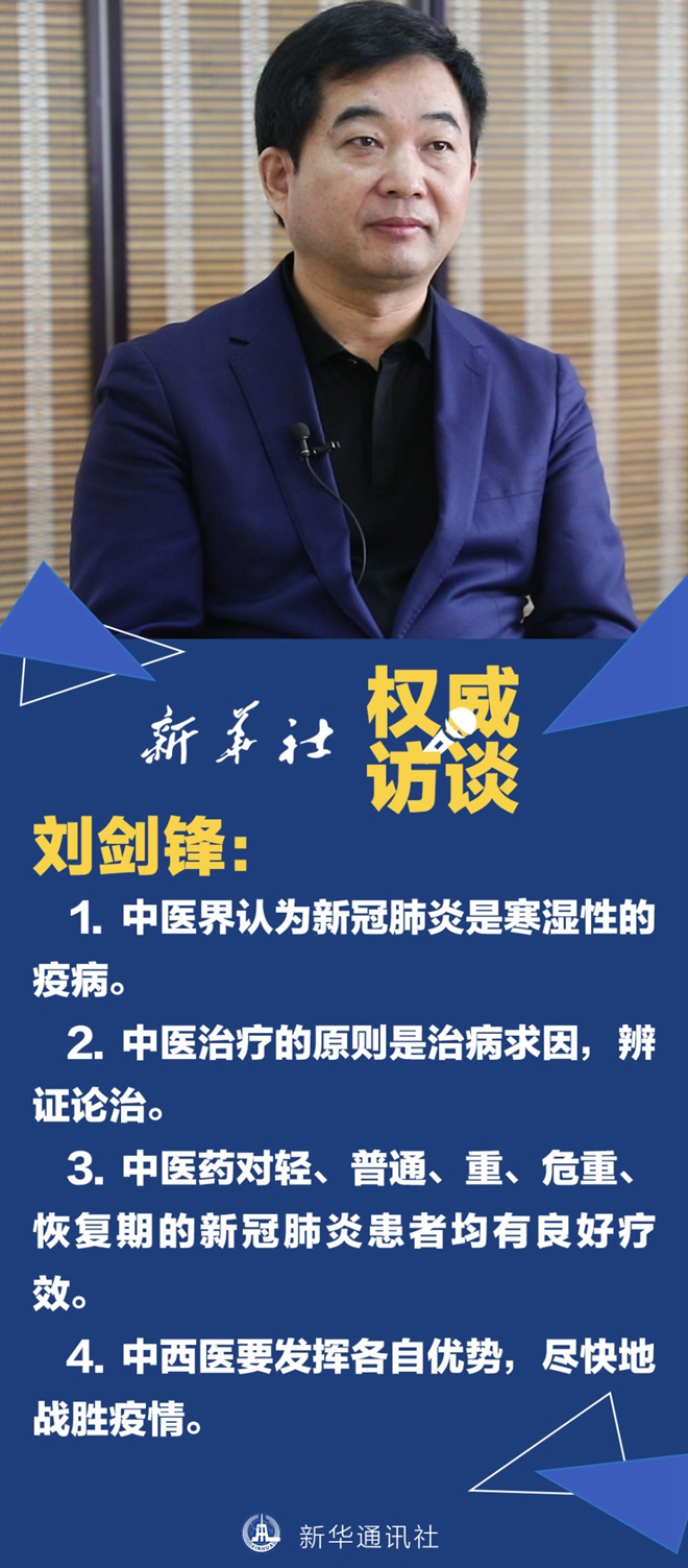 從中醫(yī)角度看,新冠肺炎的致病機(jī)理是什么?中醫(yī)藥在治療新冠肺炎患者過程中發(fā)揮了怎樣的作用?什么是“清肺排毒湯”?如何看待治療新冠肺炎過程中的中西醫(yī)結(jié)合?就這些問題,新華社記者2月20日專訪了劉劍鋒,一起來了解一下吧!