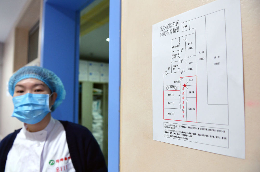 為醫(yī)務(wù)人員隨時了解情況,由青島大學(xué)附屬醫(yī)院醫(yī)療隊接管的武漢同濟(jì)醫(yī)院光谷院區(qū)工作間張貼著樓層布局指引。