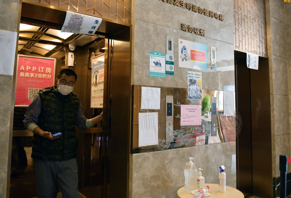 醫(yī)務(wù)人員對駐地酒店電梯按照生活駐地管理流程進(jìn)行功能劃分,工作、生活分開乘用。