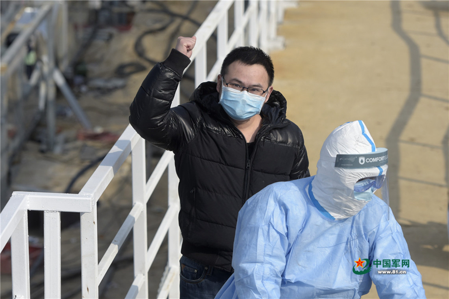 2月4日,萬先生充滿信心走進(jìn)火神山醫(yī)院。中國(guó)軍網(wǎng)記者范顯海 攝