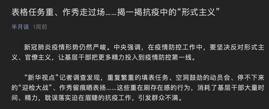 半月談?dòng)浾咴谥袞|部省份調(diào)研發(fā)現(xiàn),許多地方明明視頻會(huì)議系統(tǒng)已經(jīng)建成,在此非常時(shí)期仍要求基層有大事必須進(jìn)辦公室開(kāi)會(huì);大數(shù)據(jù)已經(jīng)有了相當(dāng)?shù)姆e累,卻“秘而不宣”“藏而不露”,仍要求基層手工填表留痕。