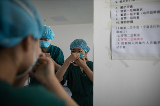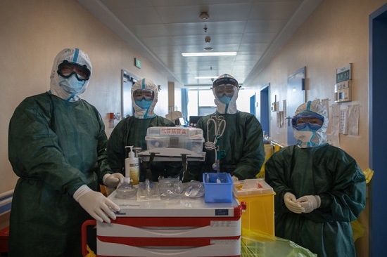 2月20日,高峰值班。他得到通知,當(dāng)天有兩例病人需要插管。經(jīng)過與主治醫(yī)師溝通,決定在上午進(jìn)行。“敢死隊(duì)”護(hù)士先在病房?jī)?nèi)準(zhǔn)備工具、藥品,然后通知高峰準(zhǔn)備。