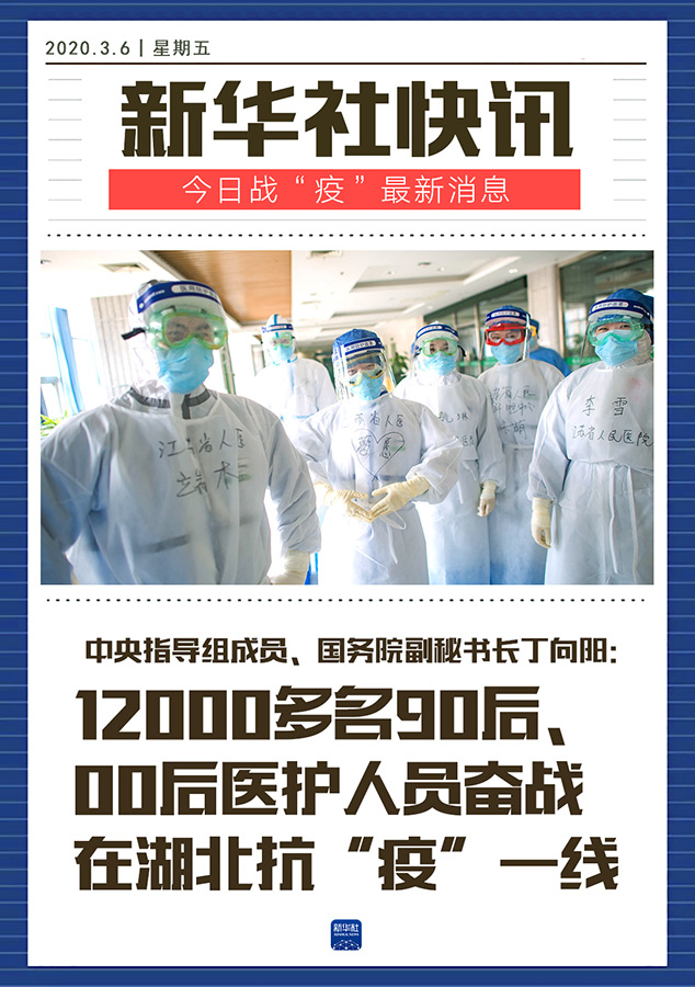 國務(wù)院新聞辦公室3月6日在湖北武漢舉行新聞發(fā)布會(huì),請(qǐng)中央指導(dǎo)組成員、國務(wù)院副秘書長丁向陽,中央指導(dǎo)組成員、工業(yè)和信息化部副部長王江平,中央指導(dǎo)組成員、國家衛(wèi)生健康委黨組成員、中醫(yī)藥局黨組書記余艷紅介紹新冠肺炎疫情防控救治進(jìn)展情況,并答記者問。